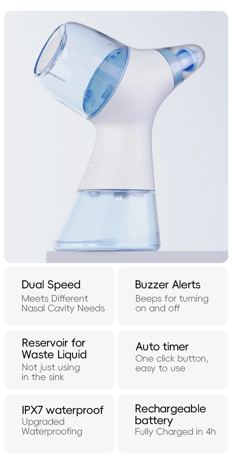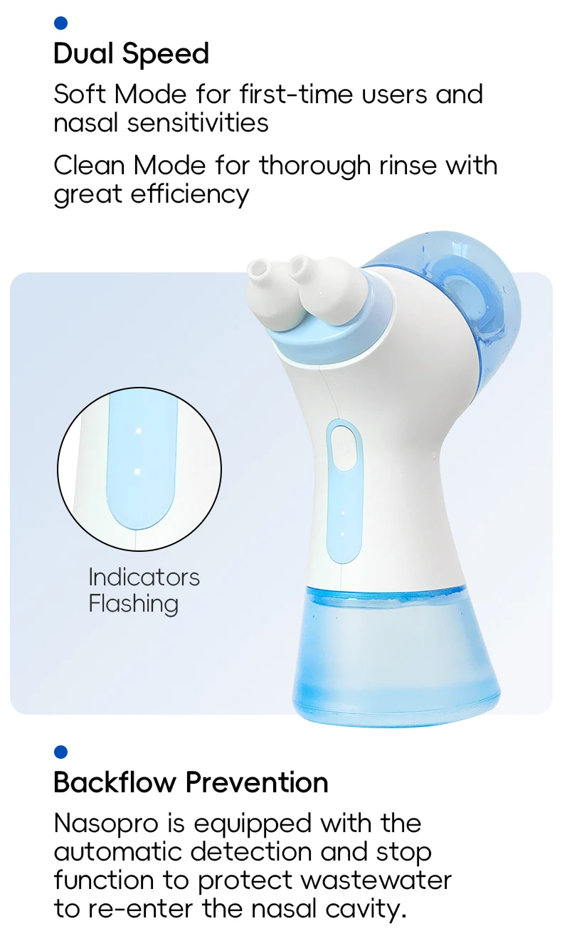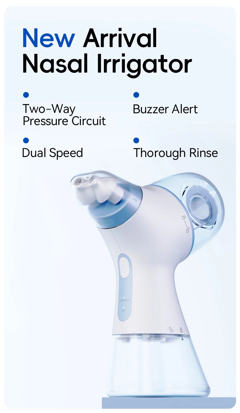 5.The vacuum pump helps reduce the pressure on noses during rinsing and the risks of getting otitis media with a gentle flow.