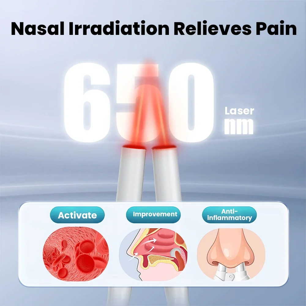 KN-3113L is a Medical Grade Rhinitis Treatment 650nm Red Light Nasal Laser Physical Therapy Apparatus Sinusitis Cure Machine Allergic Rhinitis Treatment Device.