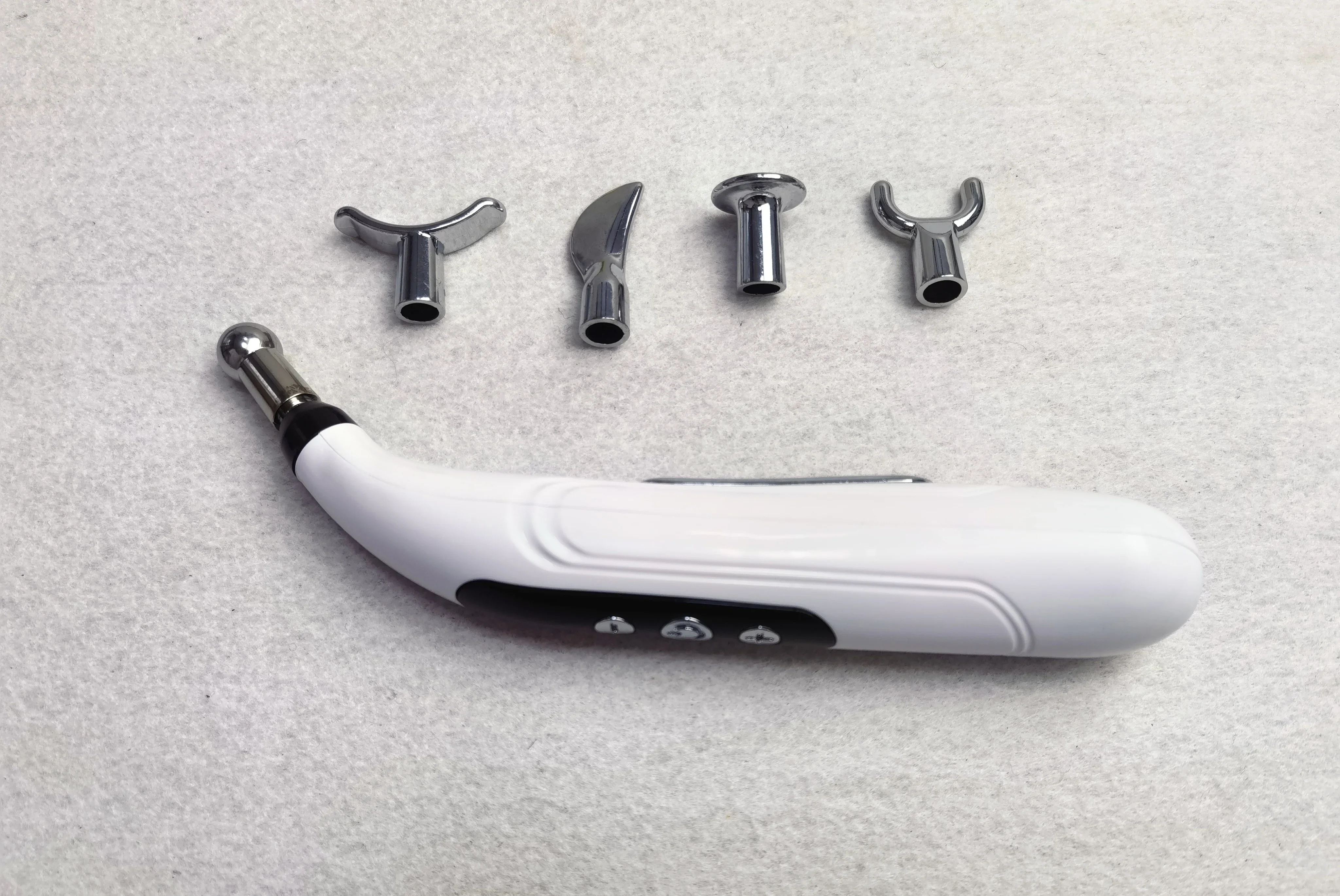 The electronic acupuncture massage pen is powered by the battery and relies on electric current to stimulate the acupuncture points.The current flows from the tip of the product through the human body to the end of the product to form a circular flow, so the end of product will carry a slight current, which is not quality issue.